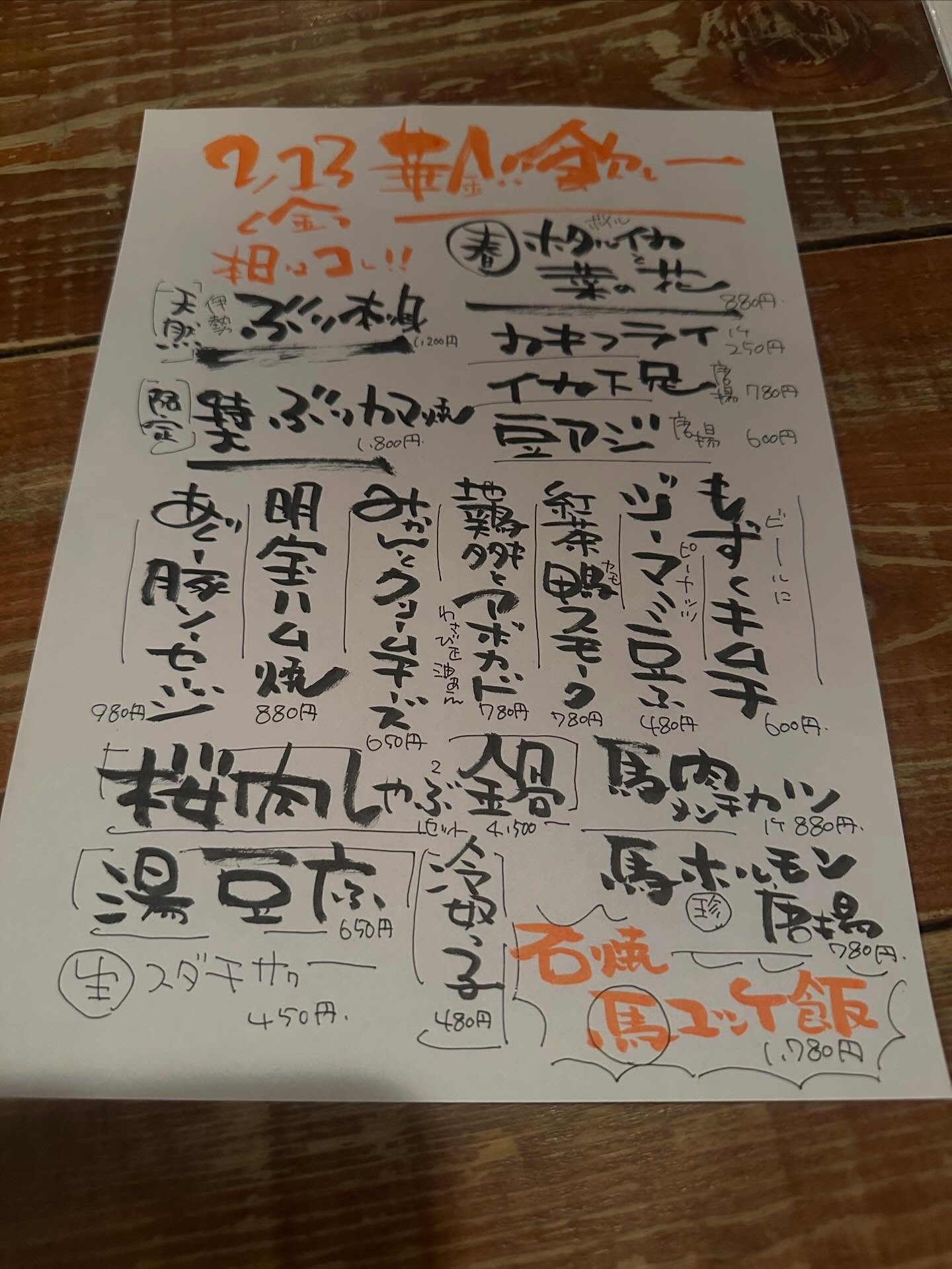 ジャンル 居酒屋・馬刺し・日本酒